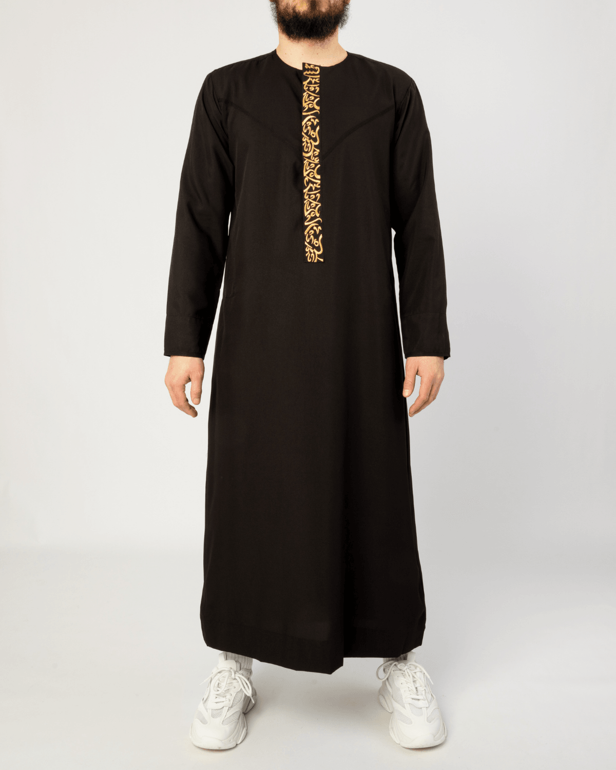 De handgemaakte details maken hem uniek. Geïnspireerd door traditionele Arabische kalligrafie, maar met een moderne touch. Dit is geen doorsnee Qamis - dit is een stuk dat je zelden tegenkomt.