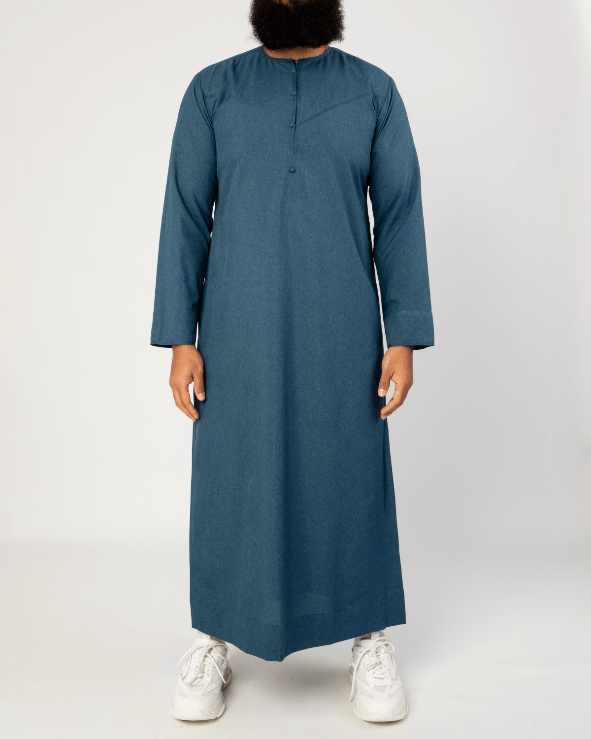 Wat een echte Emirati Qamis zo bijzonder maakt is de unieke combinatie van lichtheid en elegantie. De fijne, ademende stof beweegt moeiteloos met je mee.